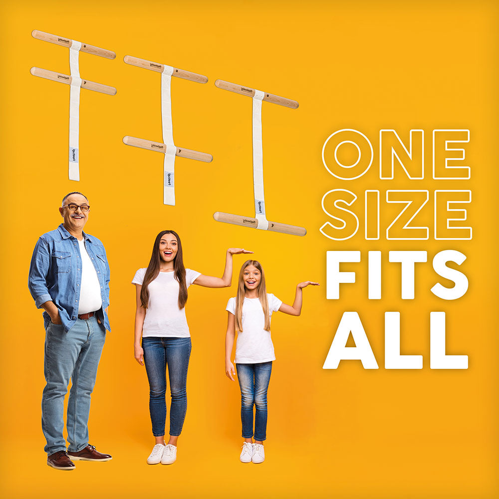 - Adjust the length through the loopholes and roll the bar in your hand to fit your level of flexibility.