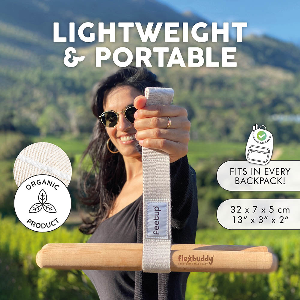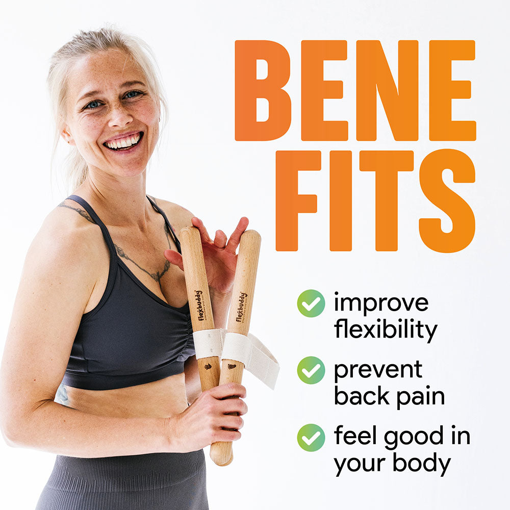 - Simply place one wooden bar onto your feet soles and grab the counterpart with your hands.
